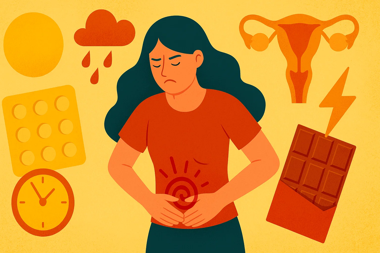 ПМС з’являється через коливання гормонів — естрогену та прогестерону. Перед менструацією рівень цих гормонів змінюється, що впливає на нервову систему, обмін речовин і настрій. Часто симптоми посилюються через хронічний стрес, нестачу магнію, неправильне харчування або малорухливий спосіб життя. Важливу роль відіграє і якість сну — недосипання здатне посилити дратівливість і головні болі. Додатковими факторами є кофеїн, алкоголь, куріння та дефіцит заліза.